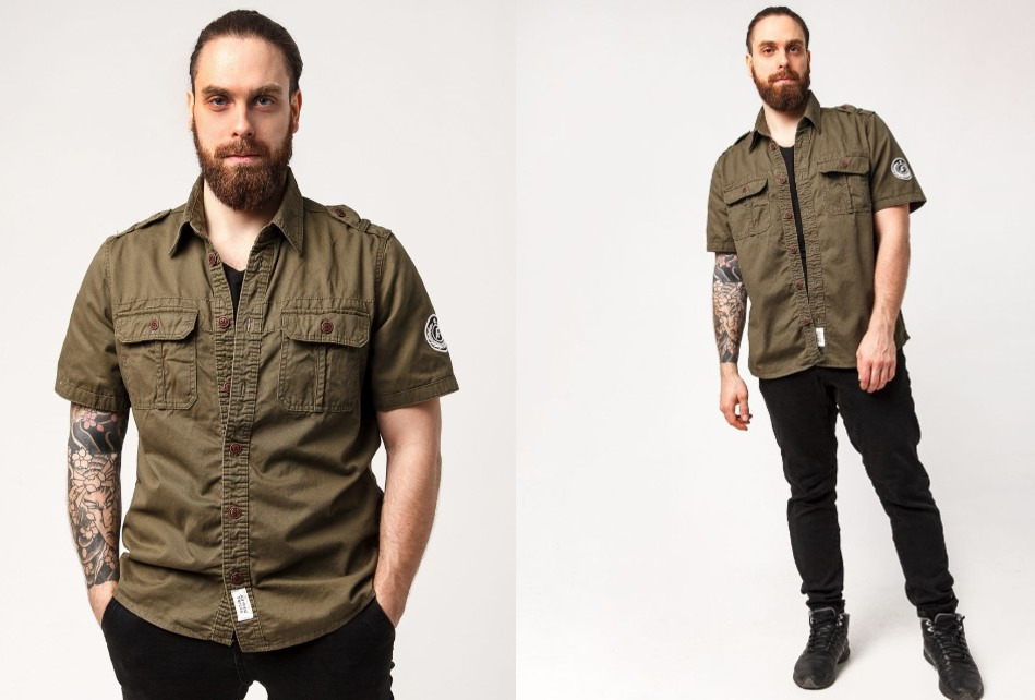 Хаки является нейтральным и сочетается с белым, серым, черным цветом, а также яркими акцентами: желтым, красным и синим, например. Кроме комбинирования оттенков, не забывайте учитывать фасон и материал, из которого пошита рубашка. Это важно для создания гармоничного образа.
