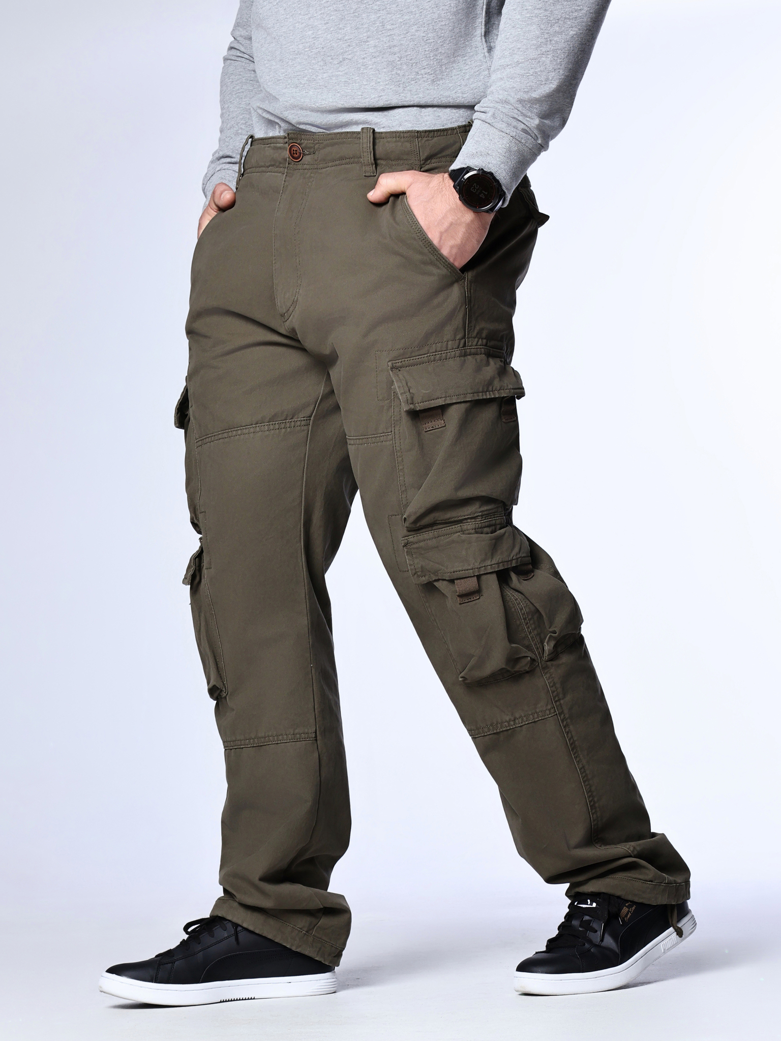 Брюки карго оснащены множеством карманов, два прорезных кармана спереди, два прорезных кармана на кнопках сзади, и по три накладных кармана на кнопках по бокам. Такое количество карманов делает эту модель более практичной и функциональной, чем остальные модели брюк. Вы сможете без труда разместить все необходимые вещи в карманах и не использовать дополнительные аксессуары для хранения.