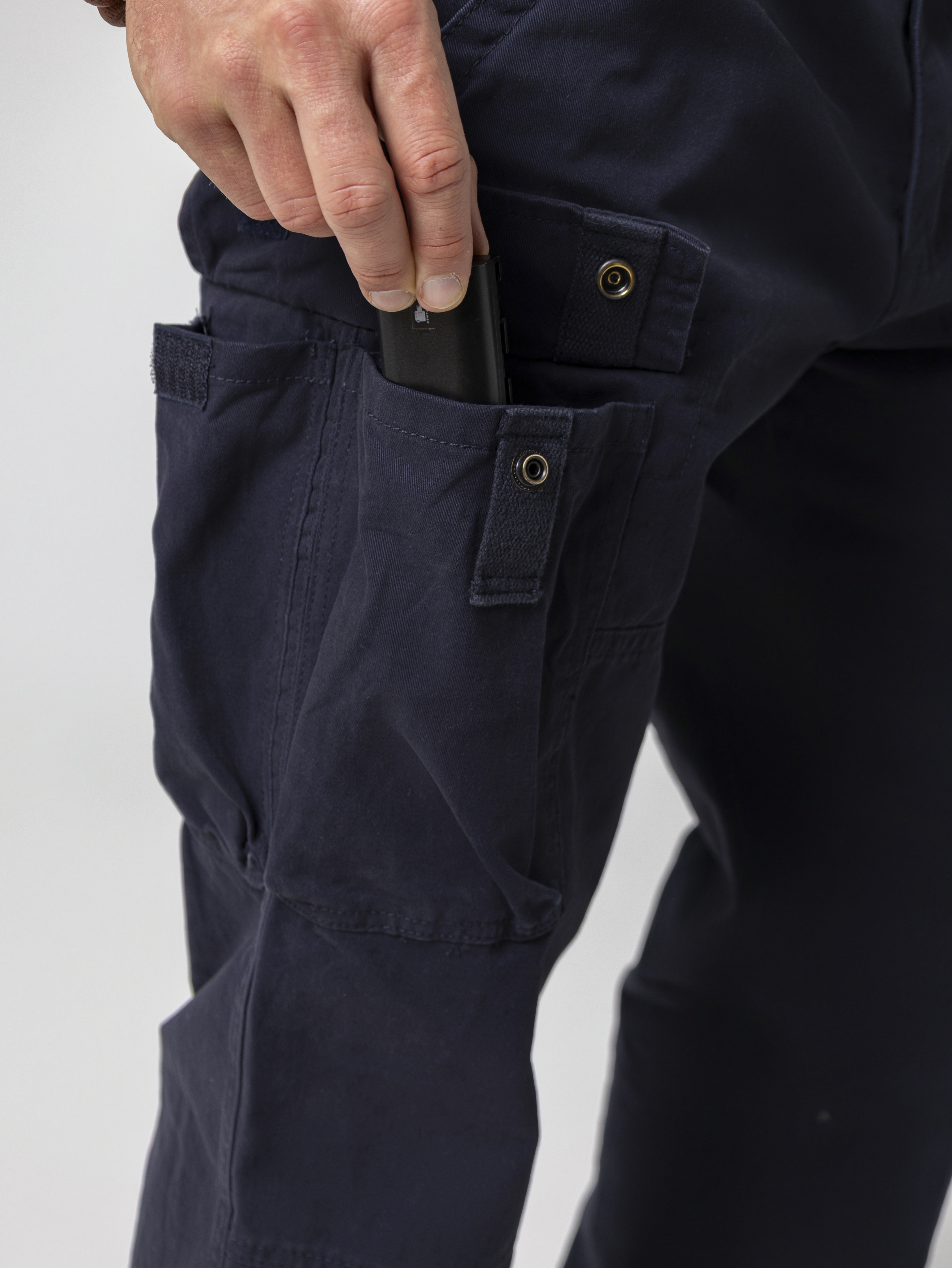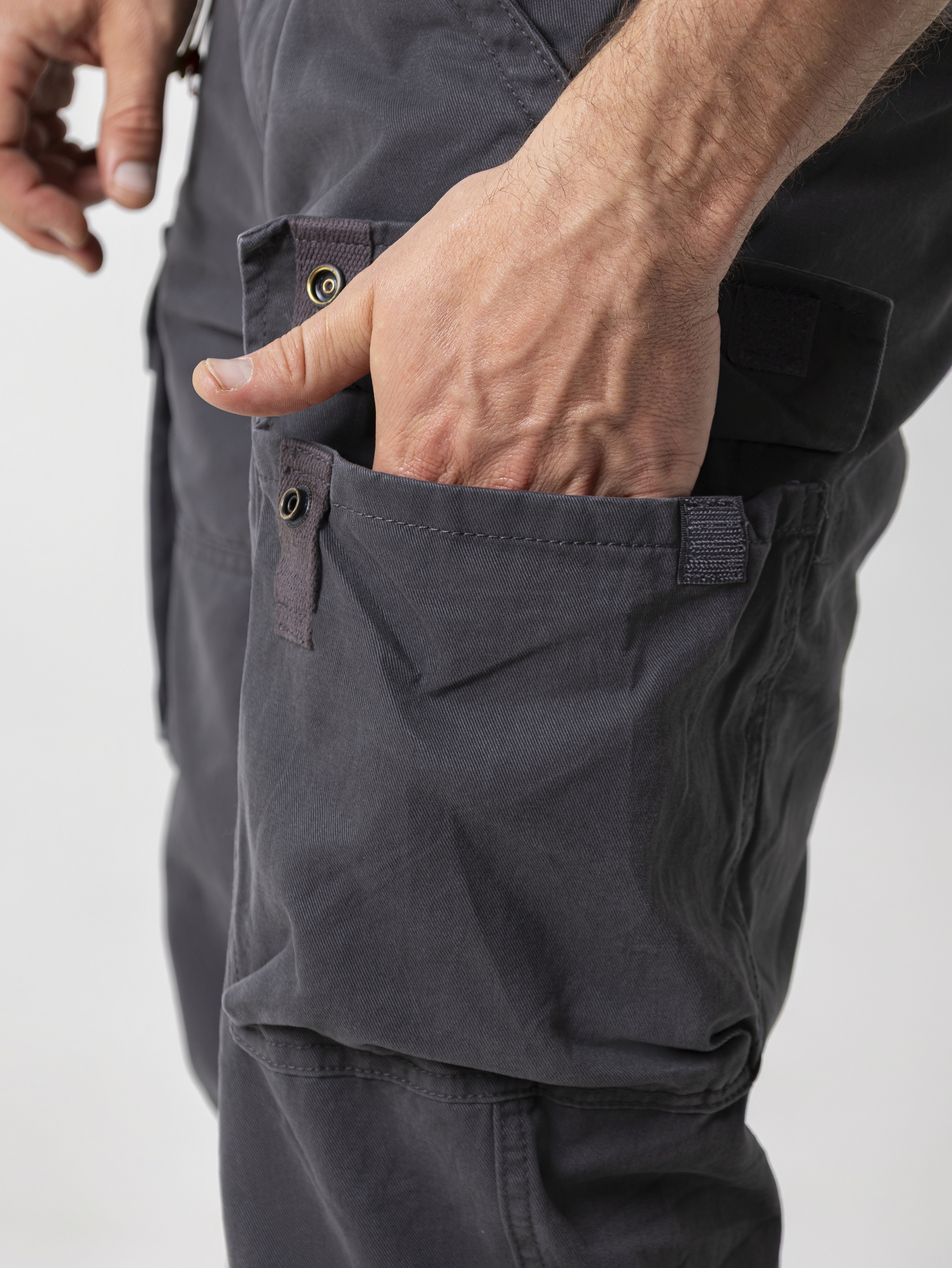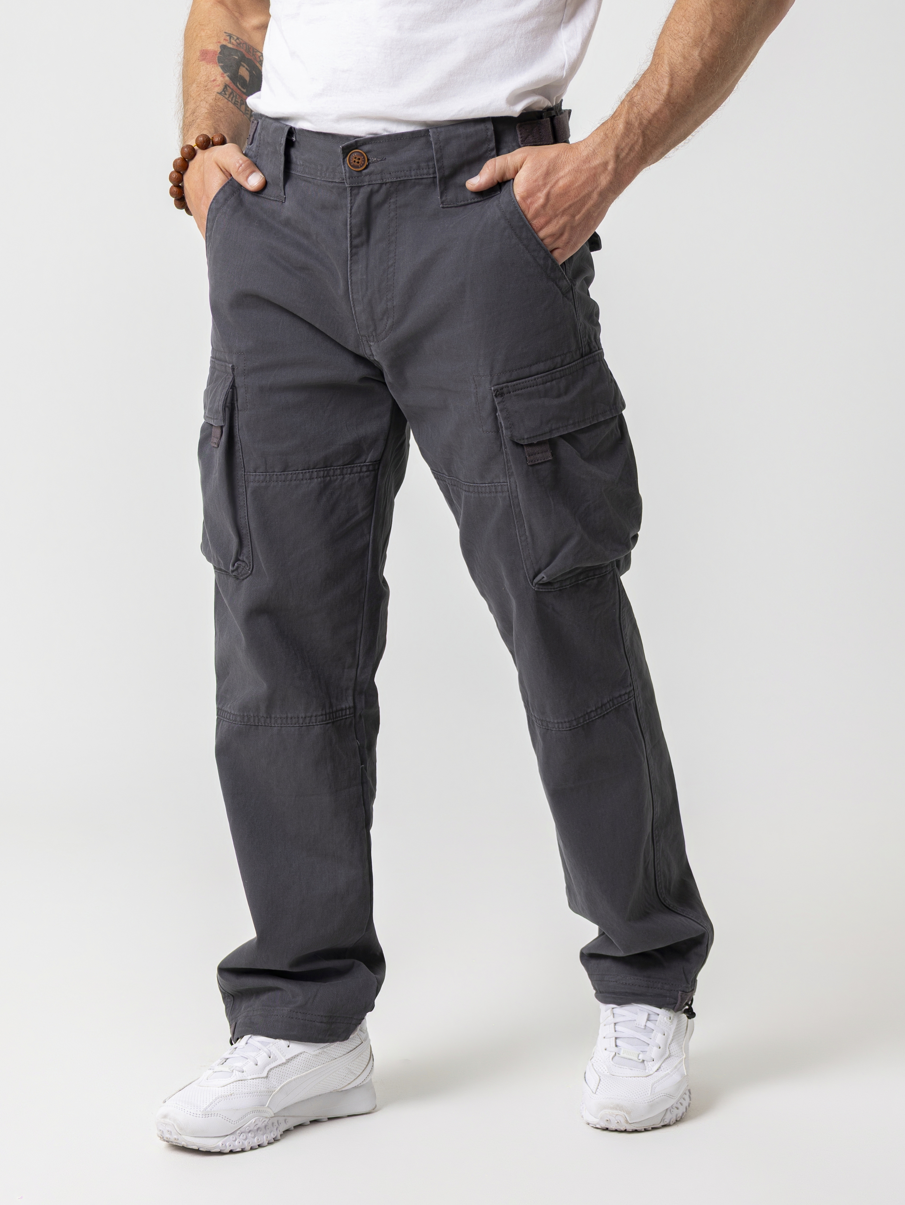 Брюки карго оснащены множеством карманов, два прорезных кармана спереди, два прорезных кармана на липучках сзади, и по одному карману на кнопках по бокам. Такое количество карманов делает эту модель более практичной и функциональной, чем остальные модели брюк. Вы сможете без труда разместить все необходимые вещи в карманах и не использовать дополнительные аксессуары для хранения.