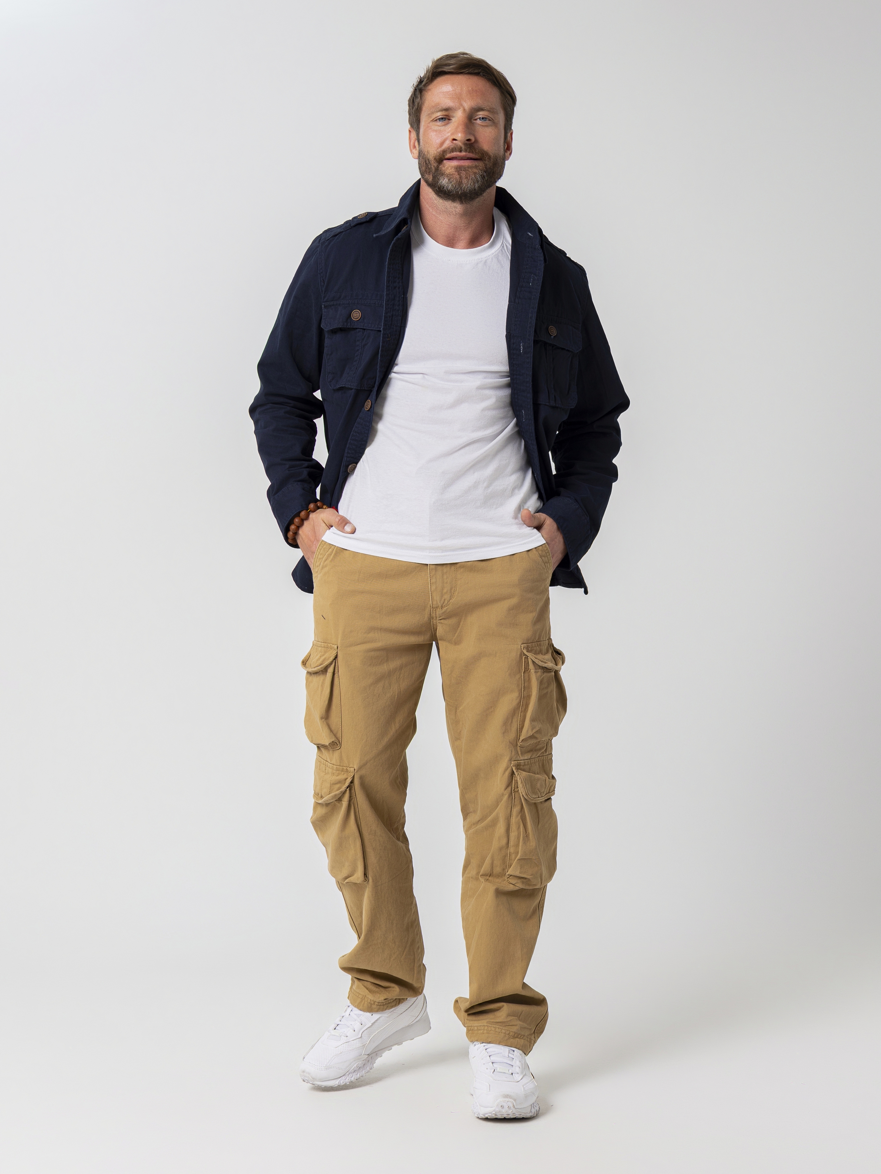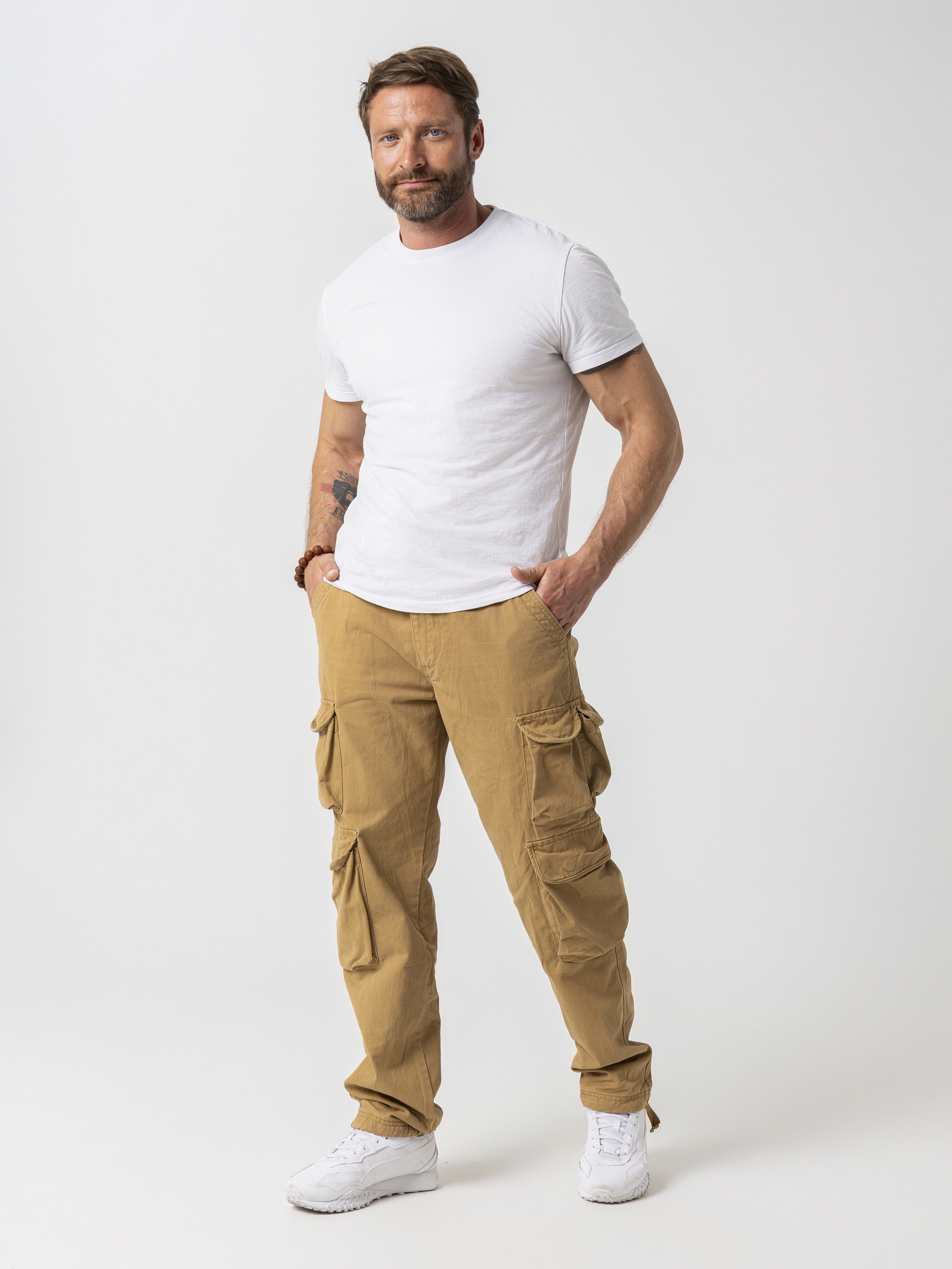 Для Вашего удобства брюки оснащены карманами, а именно: двумя прорезными карманами спереди и двумя прорезными карманами сзади с откидным верхом, четырьмя накладными карманами по бокам штанин с откидным верхом. Такое множество карманов делает данную модель практичнее и функциональнее других.