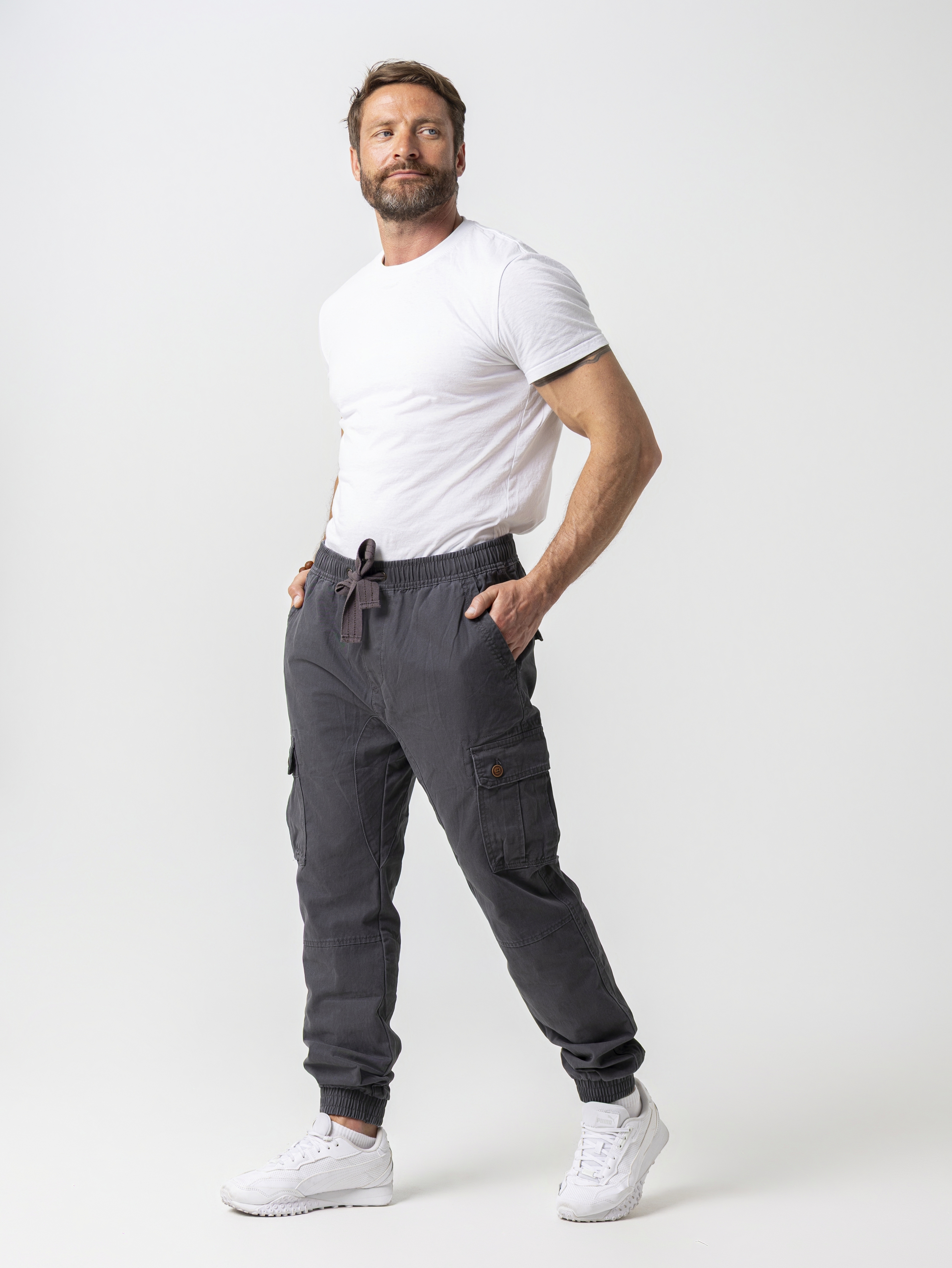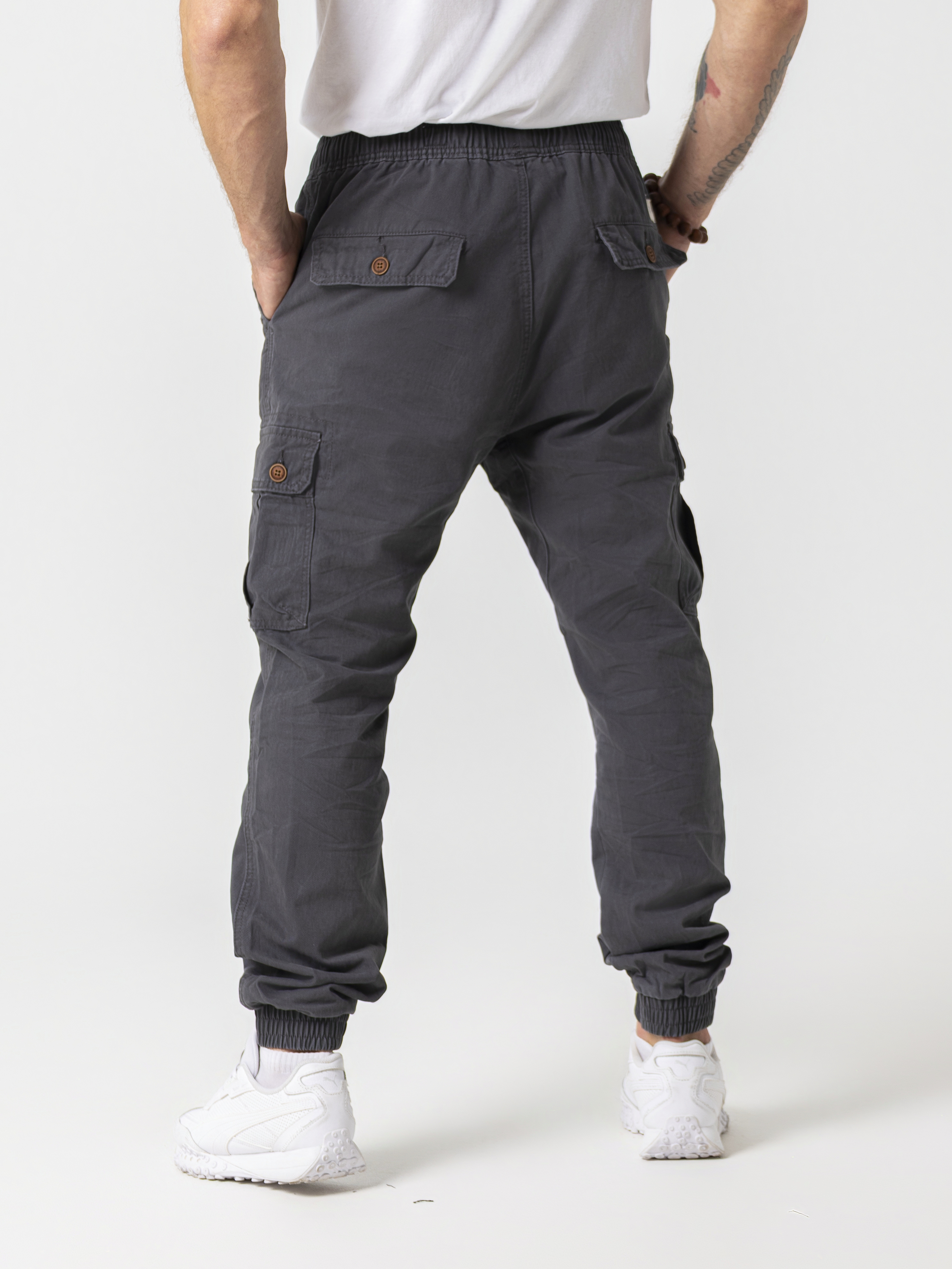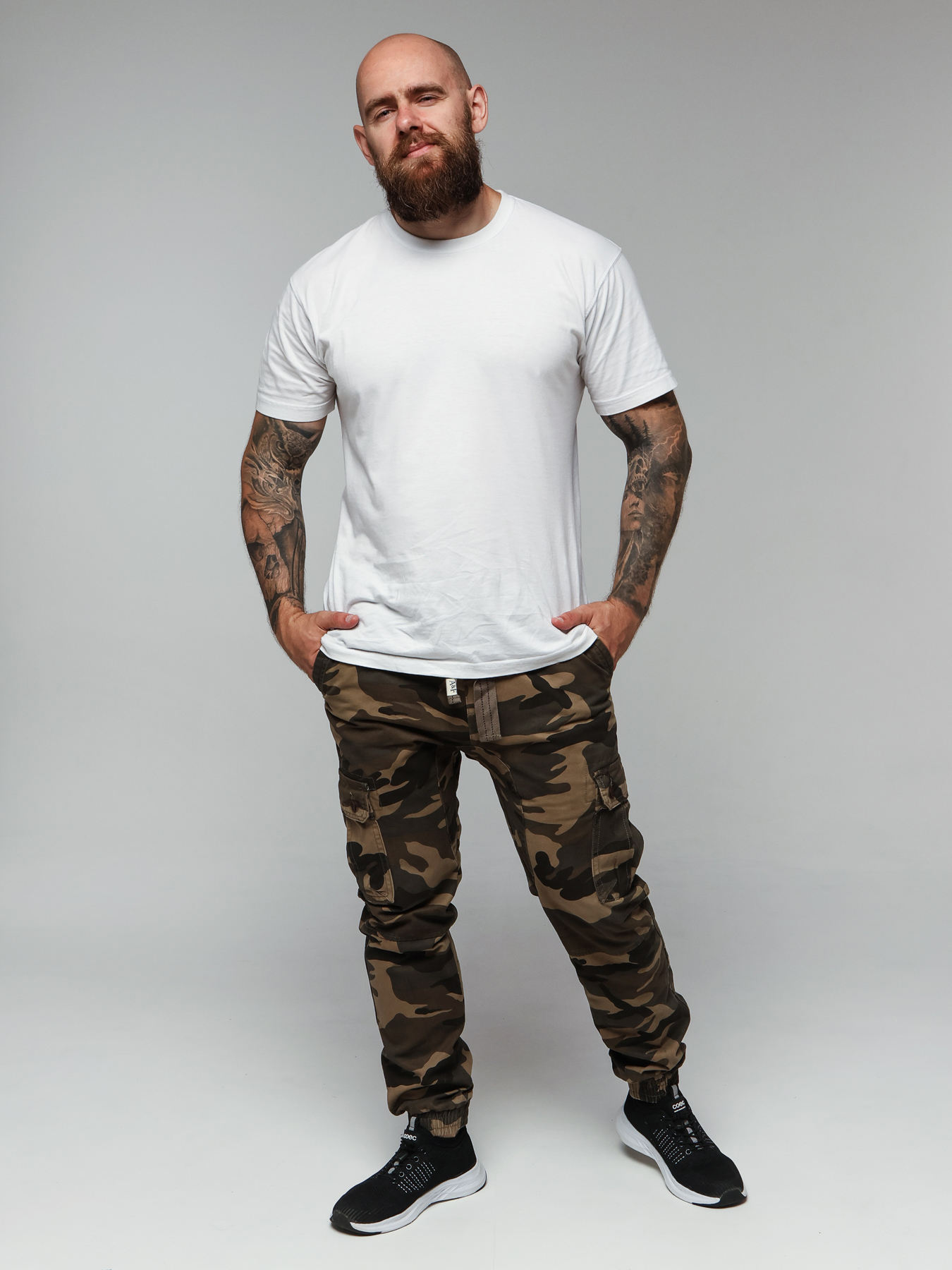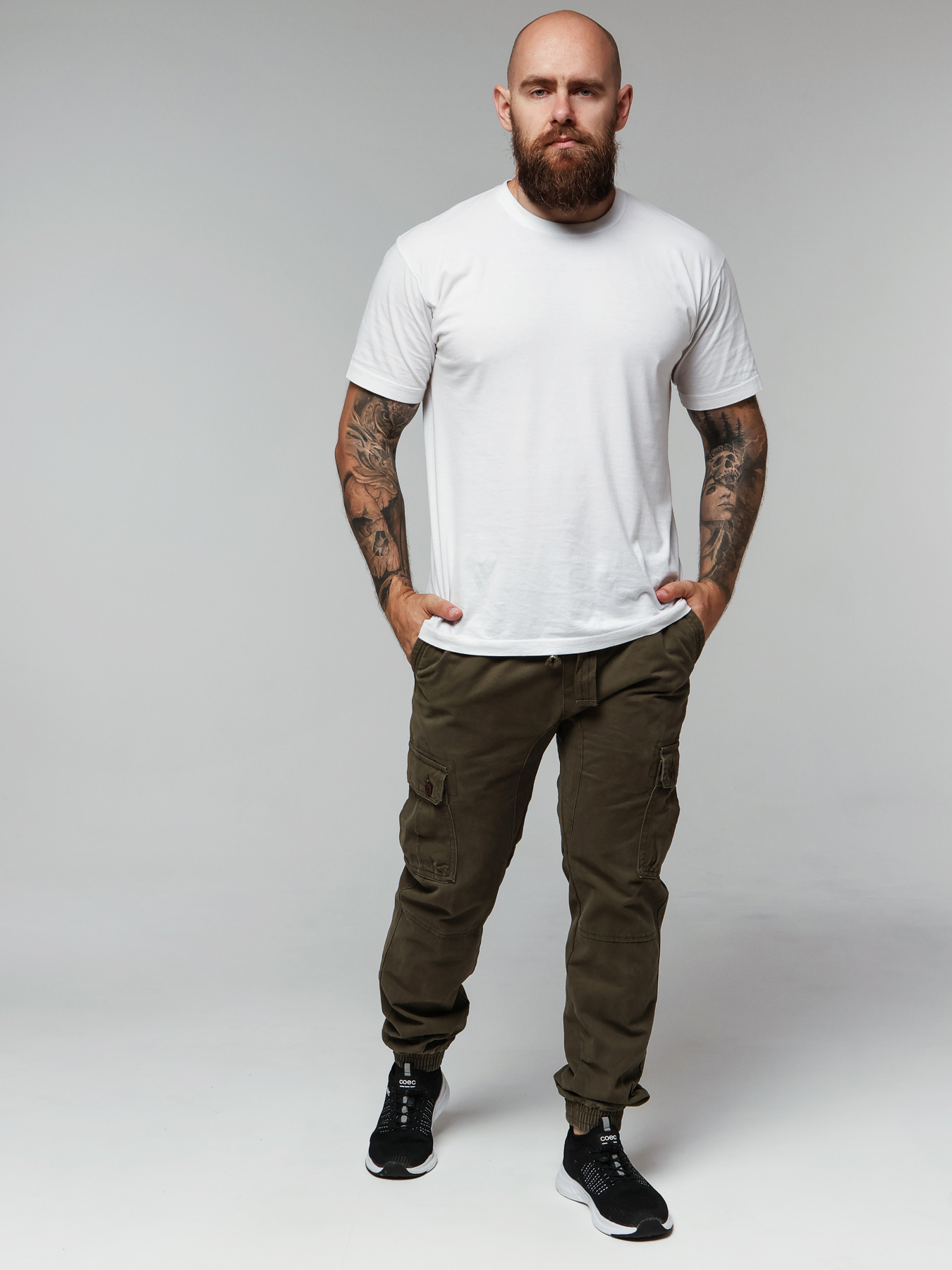 Джоггеры от бренда Abercrombie & Fitch - это стильный и удобный выбор на каждый день. Сделаны они из высококачественного хлопка, который приятен на ощупь и обеспечивает хорошую воздухопроницаемость. Такие брюки идеально подходят для мужчин, которые ценят удобство и уникальность в одежде. Брюки имеют 6 карманов, два сзади с накладным бочком на кнопке, два прорезных спереди, и два по бокам. По талии брюк идет резинка, которая дополнена шнурками для утяжки брюк по талии. Снизу брюки имеют эластичную резинку, благодаря которой брюки надежно закрепятся на щиколотке и не будут мешать вашим движениям. Брюки свободно сидят, что обеспечивает максимальное удобство при носке. Большое количество карманов позволяет удобно разместить необходимые мелочи, что особенно актуально для повседневного использования. Устойчивые к износу и легкие в уходе, они сохранят идеальный вид на протяжении длительного времени. Независимо от того, идет ли речь о деловой встрече, прогулке по городу или активном отдыхе на природе, эти карго штаны станут надежной и стильной основой вашего образа.