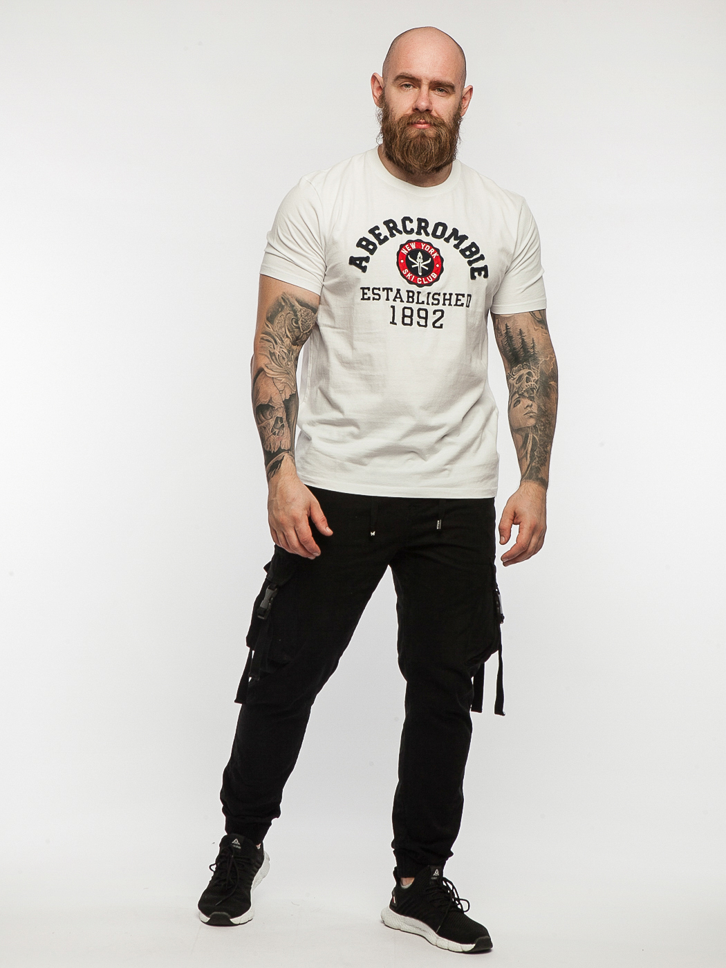 Мужская футболка от бренда Abercrombie & Fitch - идеальный выбор для стильного и комфортного образа. Изготовлена из 100% натурального хлопка, она приятная на ощупь и дышащая. Прямой крой отлично подойдет для создания базового гардероба. Эта футболка будет отлично сочетаться с любыми брюками или джинсами, создавая элегантный или повседневный образ в зависимости от вашего настроения.