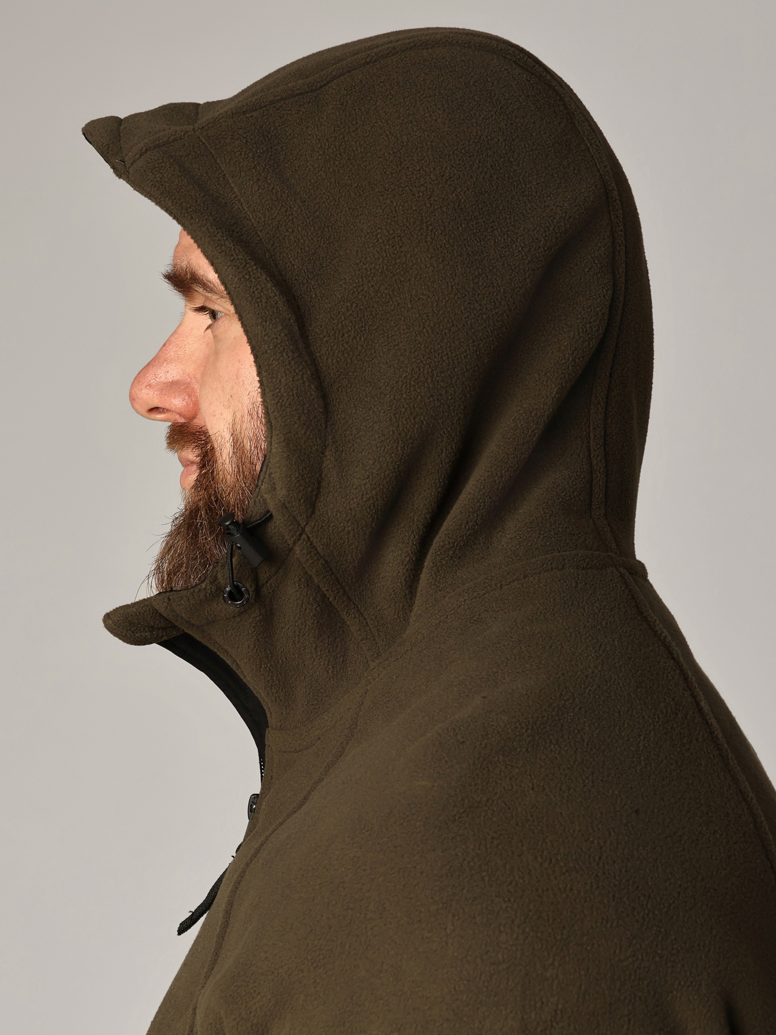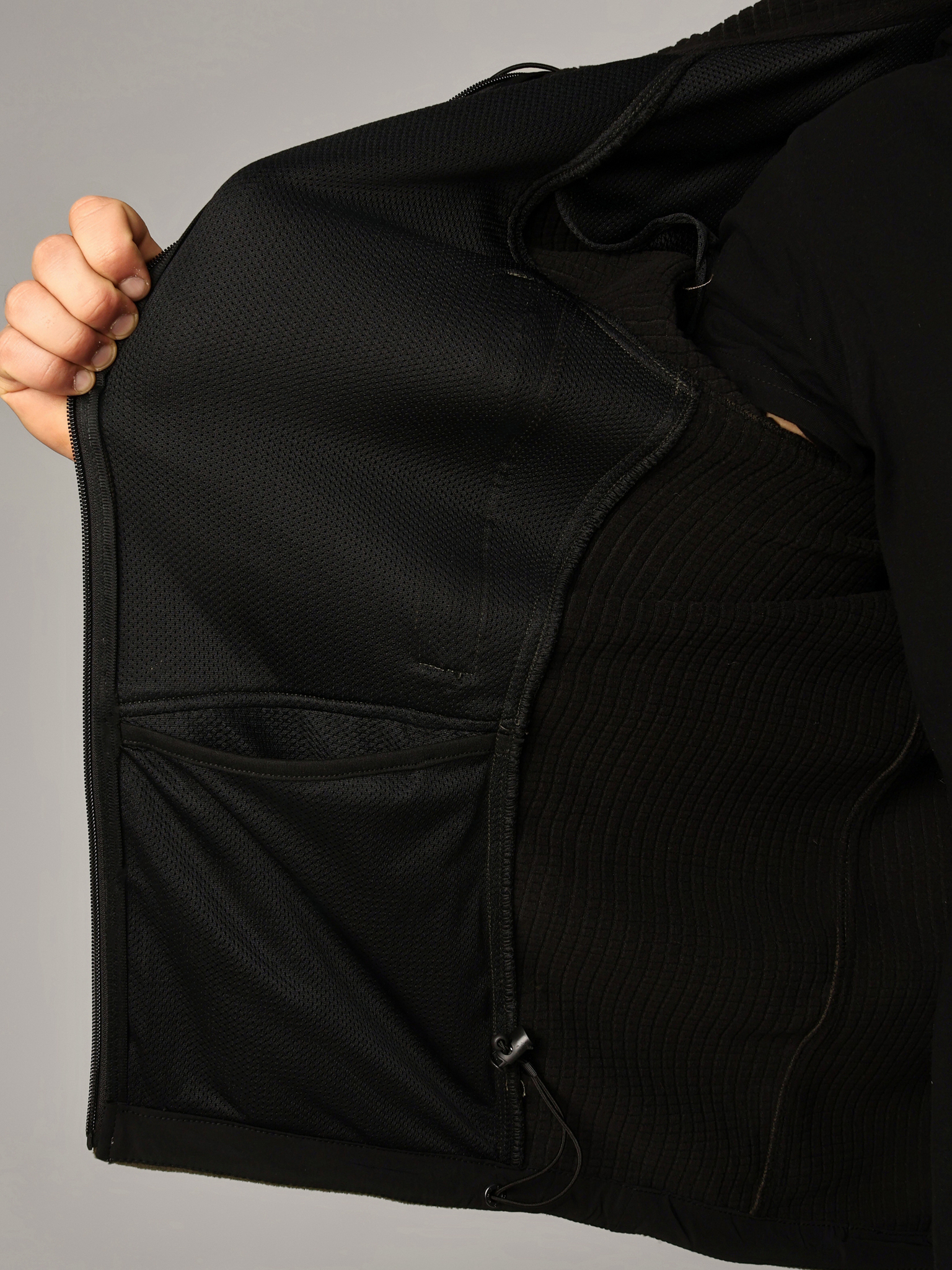 Капюшон дополнительно защищает от ветра, имеет утяжки для удобной подгонки под ваши нужды, а внутренняя подкладка выполнена сеточкой, что добавляет кофте практичности. Четыре прорезных кармана обеспечивают дополнительное удобство для хранения мелких предметов или согревания рук.