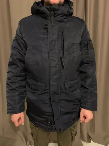 Куртка зимняя, зауженная модель для мужчин бренда Armed Forces. Вариант легендарной классической парки N-3B, ставшей эталоном мужской зимней куртки. Материал верха: 100% нейлон высокого качества, водоотталкивающий, который не пропускает ветер и влагу. Плотность синтетического утеплителя 300 г/кв.м. Для вашего удобства внутри есть индикатор температуры. Регулируемый капюшон, с отстёгивающейся опушкой, из искусственного меха. Скрытые эластичные трикотажные манжеты плотно облегают запястья и защищают руки. Это гарантирует прочность и комфортную носку изделия, на долгий срок. 5 наружных карманов, 3 внутренних кармана на молнии, сервисный карман на рукаве. Изначально предназначенная для экстремальных условий, в обычной жизни парка подходит для любого случая жизни, долговечна, имеет стильный вид и удобна в носке. Если вы впервые приобретаете продукцию бренда и сомневаетесь в правильности выбора размера, напишите нам, мы обязательно вам ответим.