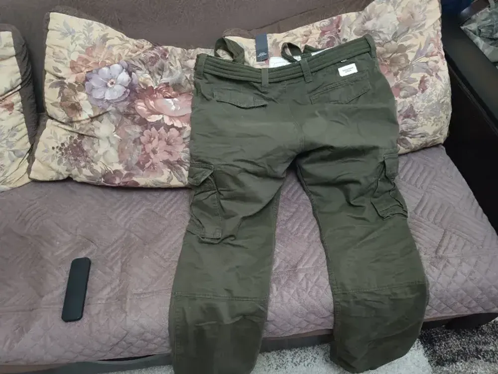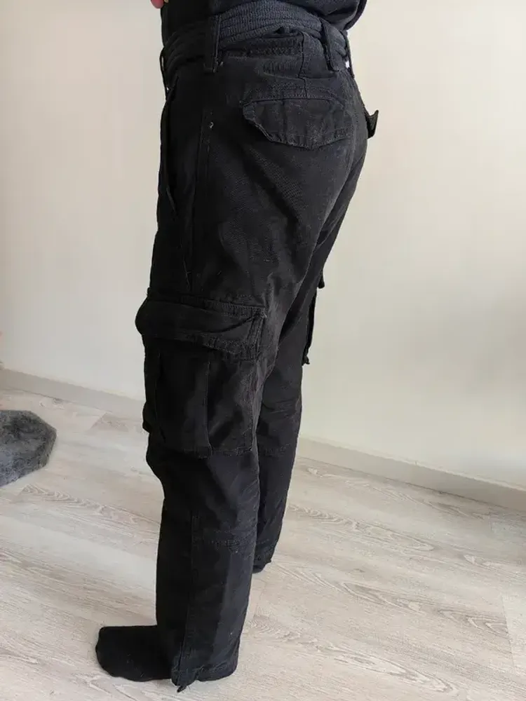 Удобные штаны карго в стиле милитари из премиального хлопка. Прямые брюки от бренда Abercrombie & Fitch сделаны из 100% хлопка, который обеспечивает длительную носку, удобство и практичность. Отличные брюки для работы в офисе, повседневной жизни и ежедневной носки, а так же рыбалки, охоты, активного отдыха и времяпровождения на свежем воздухе. Пояс имеет шнурок для утяжки с внутренней стороны, снаружи есть шлевки под ремень шириной до 5 см, который идет в комплекте. Дополнены брюки большим количеством карманов - прорезными сверху, двумя накладными карманами с откидным бочком по бокам штанин и двумя прорезными карманами сзади. Множество карманов делает данную модель практичной, так как в карманы можно положить все необходимое и не носить с собой сумку. Низ брюк можно утянуть при помощи шнурков. Их легко сочетать с различными футболками, рубашками и куртками, а так же обувью - например кроссовками, кедами и высокими ботинками. Дополнив свой гардероб такими брюками, вы легко сможете составить образ для любого образа жизни.