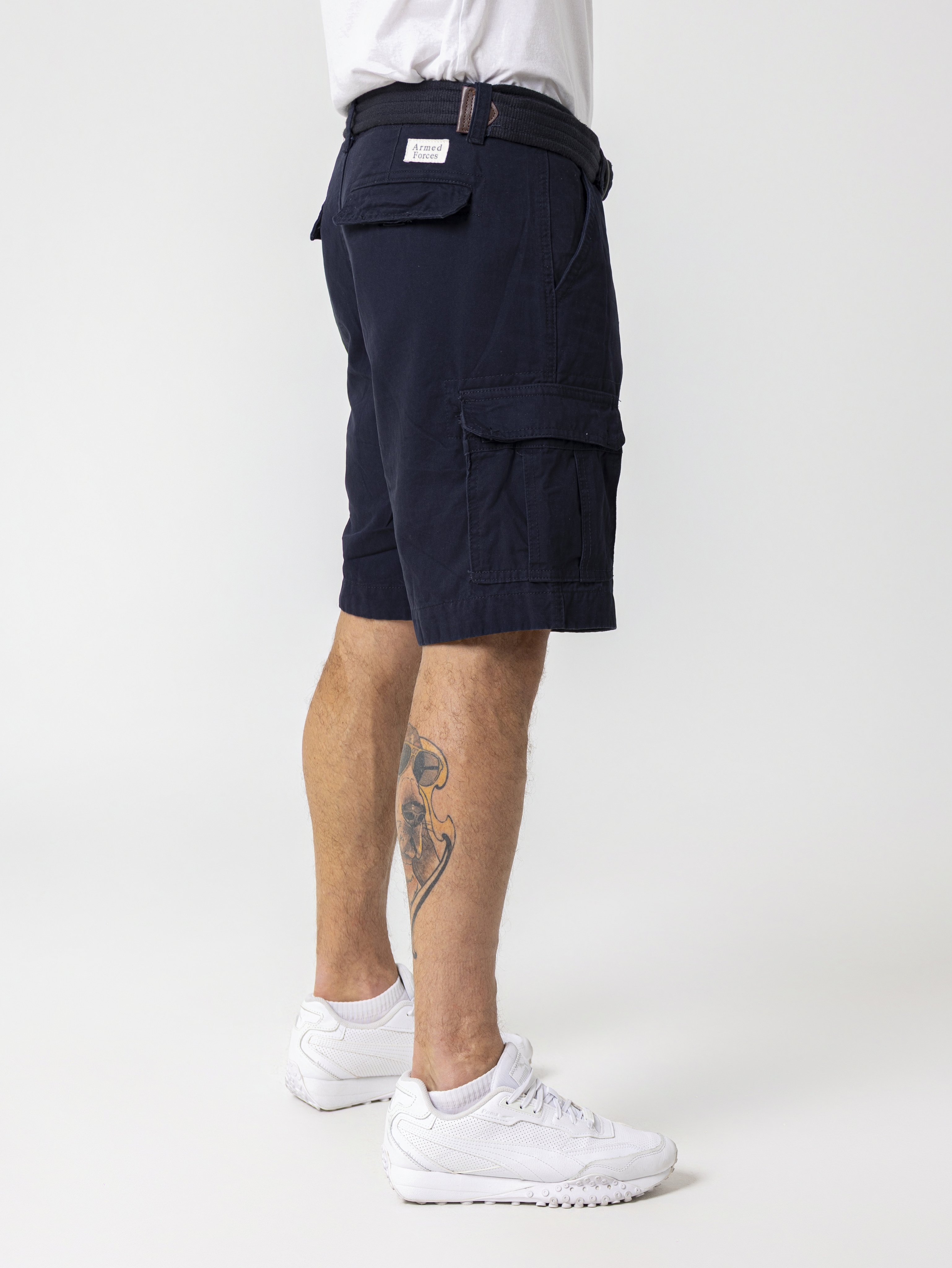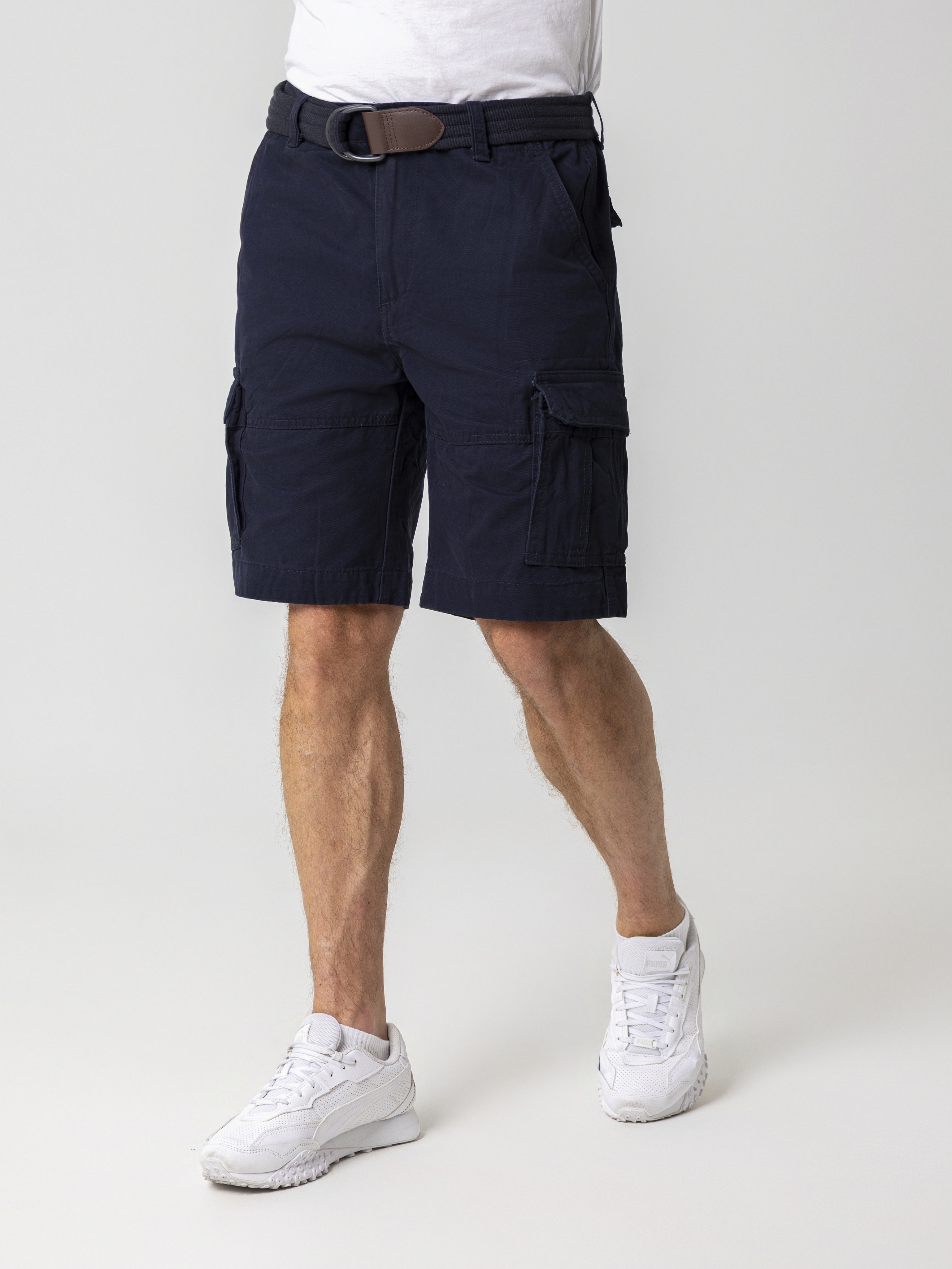 Мужские карго-шорты в стиле милитари от бренда Armed Forces - отличный выбор для комфортного времяпрепровождения в жаркое время года. Шорты сделаны из качественного плотного хлопка. В них не будет жарко или холодно, они прекрасно дышат, быстро сохнут и почти не мнутся. Шорты дополнены большим количеством карманов для хранения личных вещей - два прорезных и два накладных кармана спереди, а также два накладных кармана на пуговицах сзади. В комплекте с шортами идёт текстильный ремень в цвет брюк со вставками из искусственной кожи. Шорты надежно застегиваются на пуговицу и металлическую молнию.Внутри есть шнурки для затяжки. Данные шорты комфортно сидят на любом типе фигуры и благодаря широкому размерному ряду подойдут как взрослому, так и подростку.