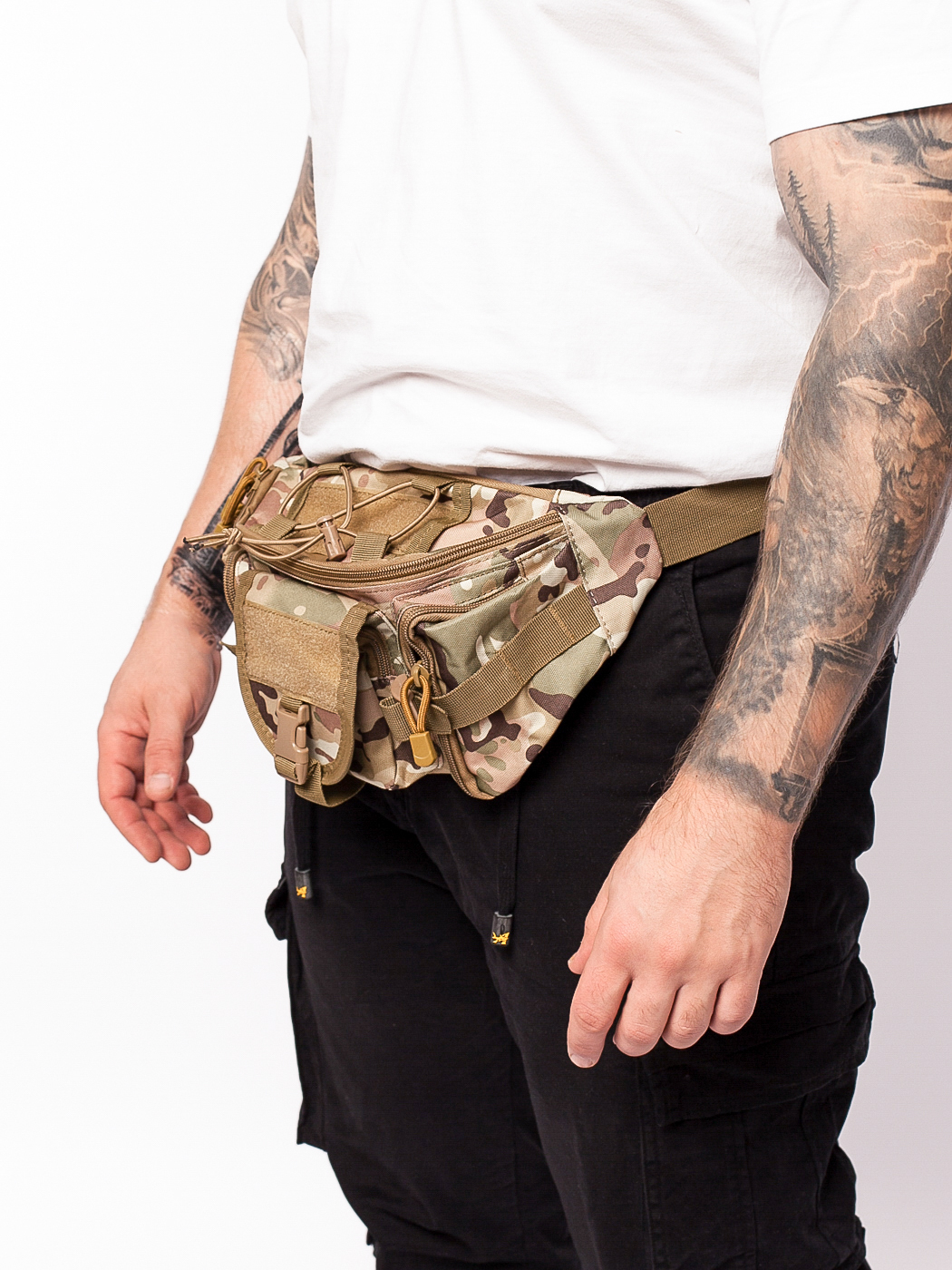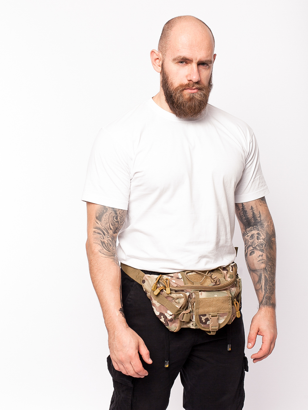 Тактическая сумка на пояс AF Tactic, изготовлена из износостойкого материала - 100% полиэстер. Сумку можно носить как на поясе, так и через плечо. Отлично подойдет для тех, кто любит активный образ жизни, туризм, походы, а так же будет актуальна для армейских учений. Сумка рассчитана на использование в качестве элемента амуниции, довольно объемная, в нее можно поместить все, что заблагорассудится. Оснащена прорезным карманом на молнии, большим карманом на молнии с дополнительным отсеком, накладным карманом на молнии с откидным верхом на фастексе, двумя боковыми накладными карманами на молнии. Имеет сумка дополнительные крепления для подсумков и карабинов. Две нашивки велкро для патчей. В верхней части сумки имеется место для переноса небольшого оборудования, которое можно затянуть на утяжку. Сам пояс шириной 4 сантиметра, прочный и надежный, застежка в виде фастекса. Регулируется размер под Вас очень легко, с помощью двух регулирующих пряжек.
