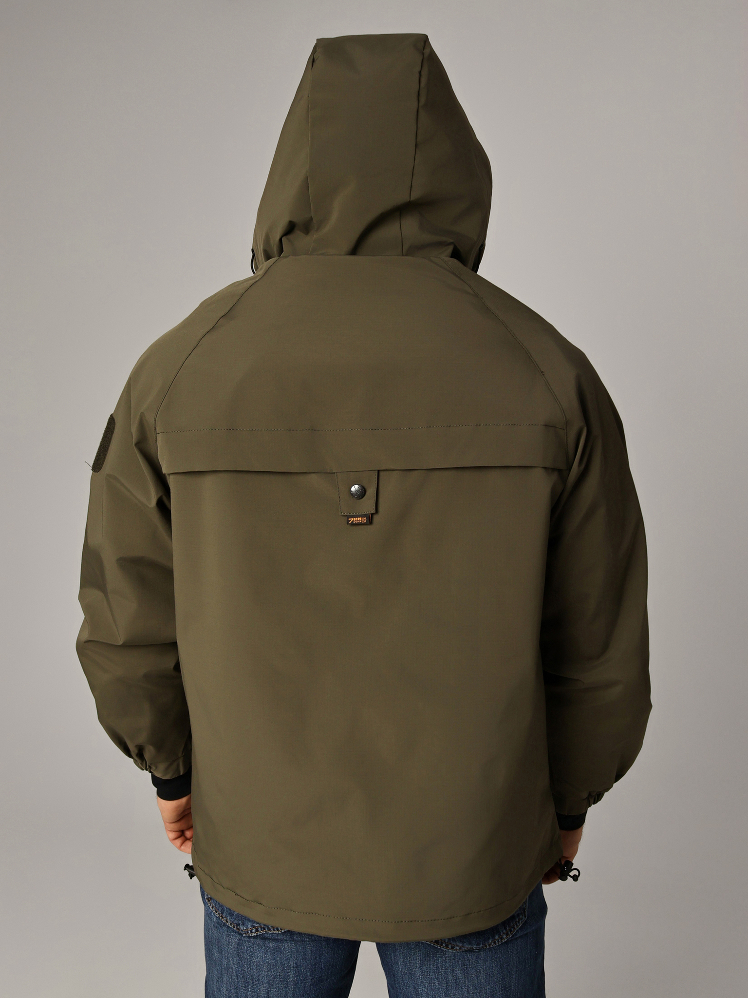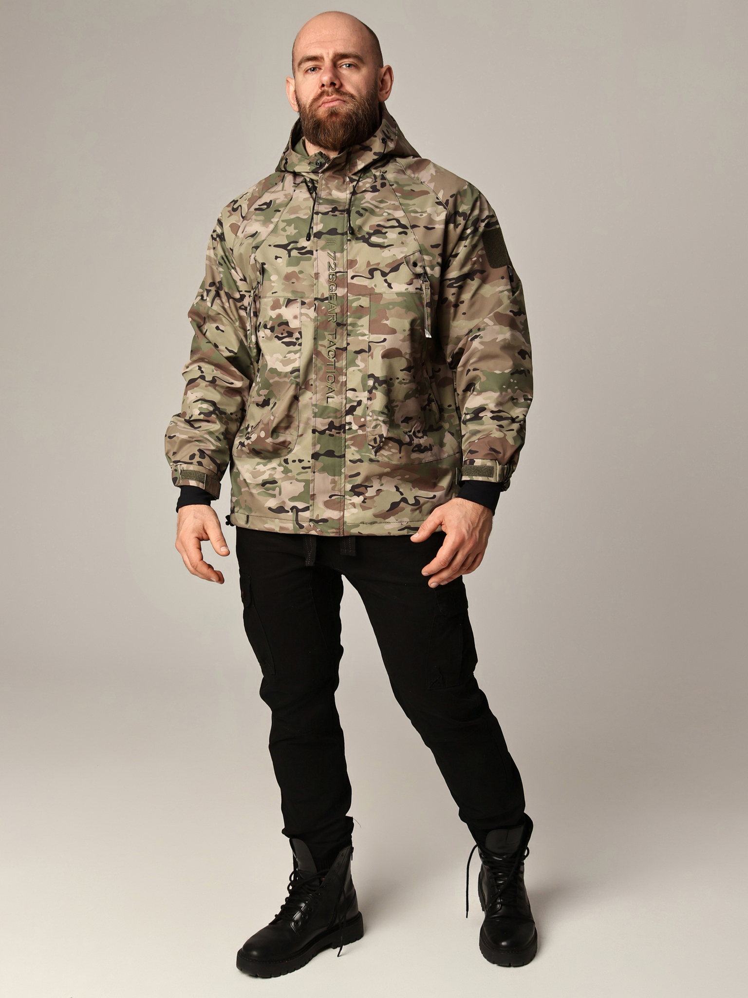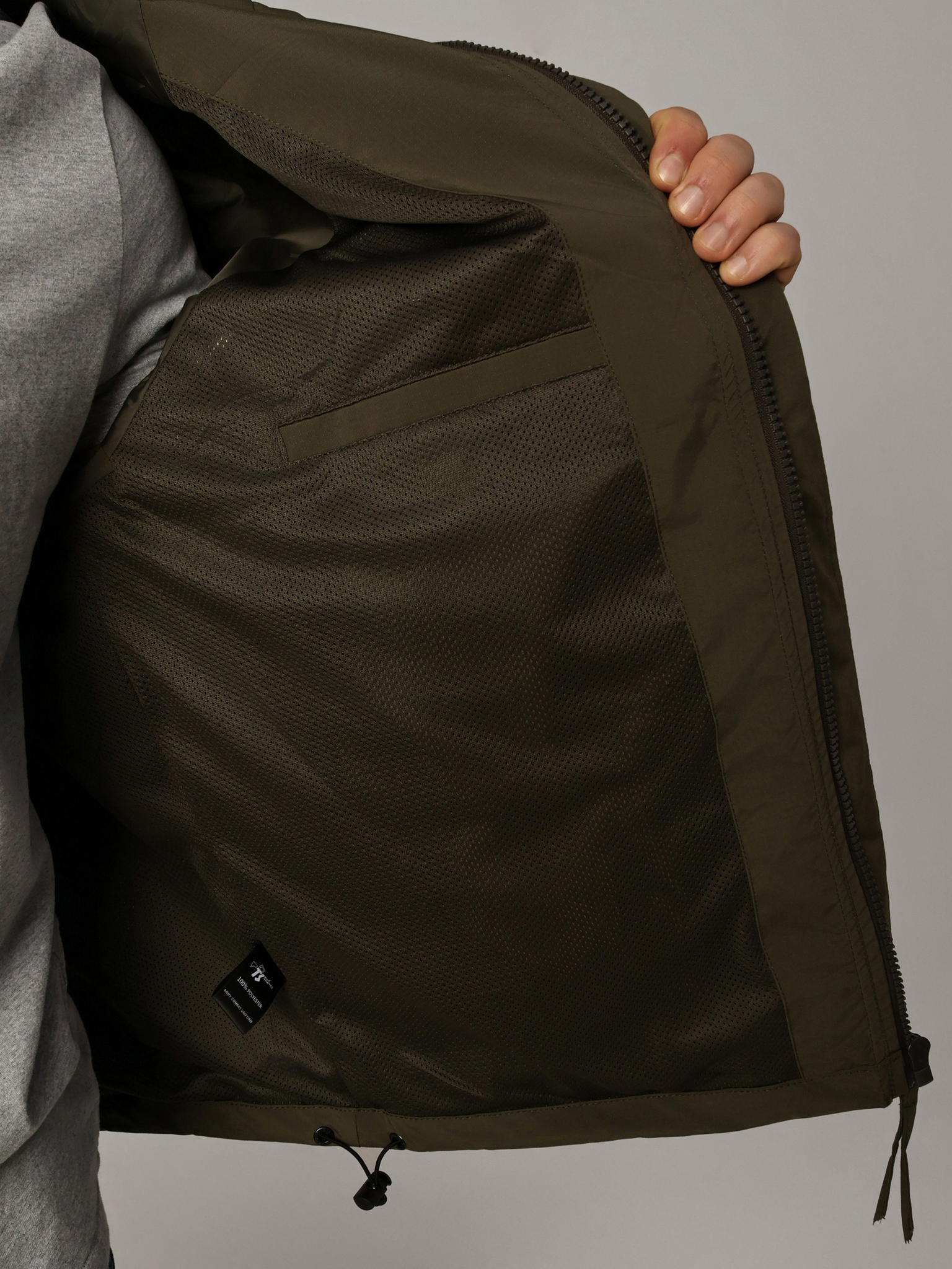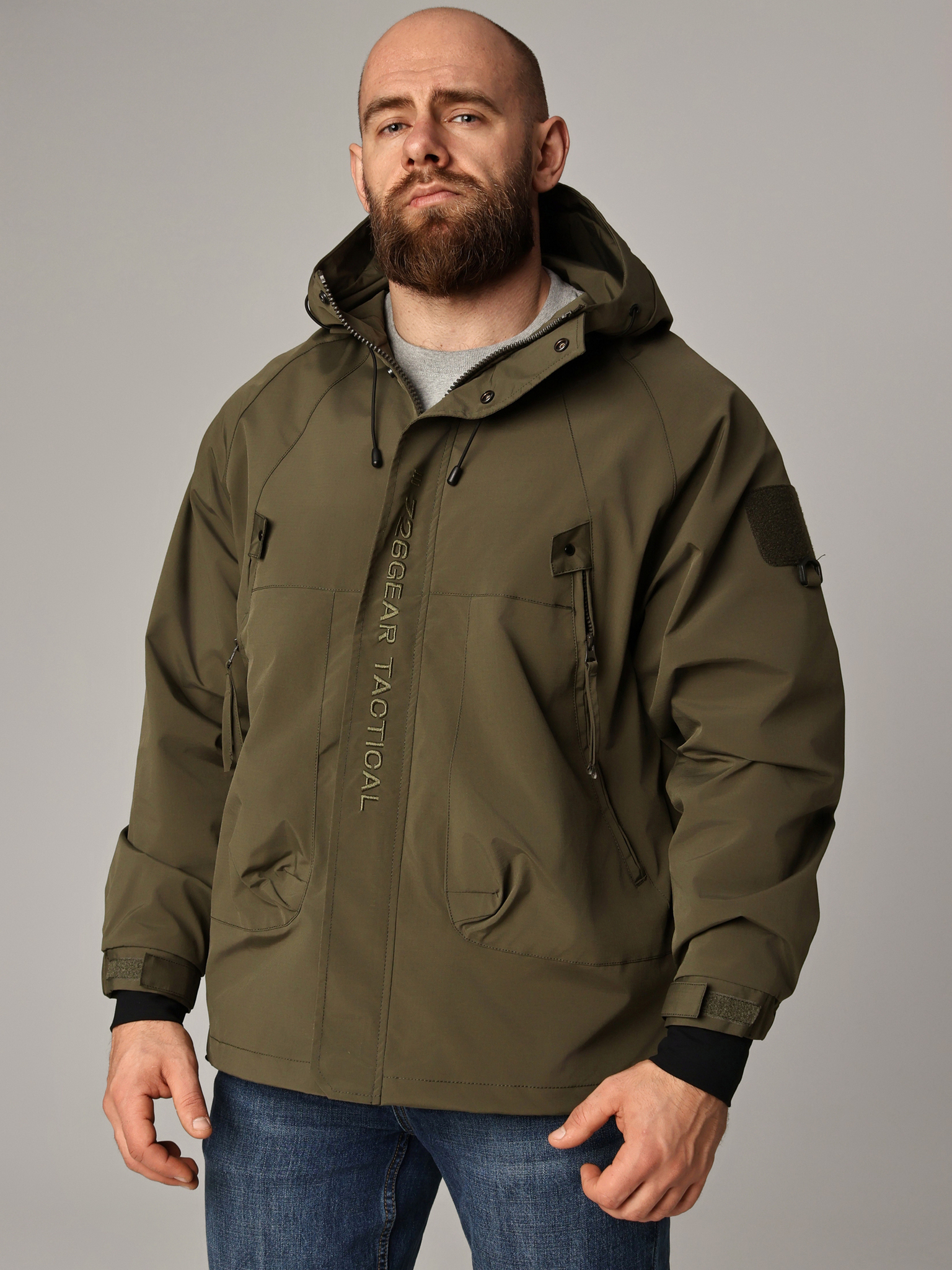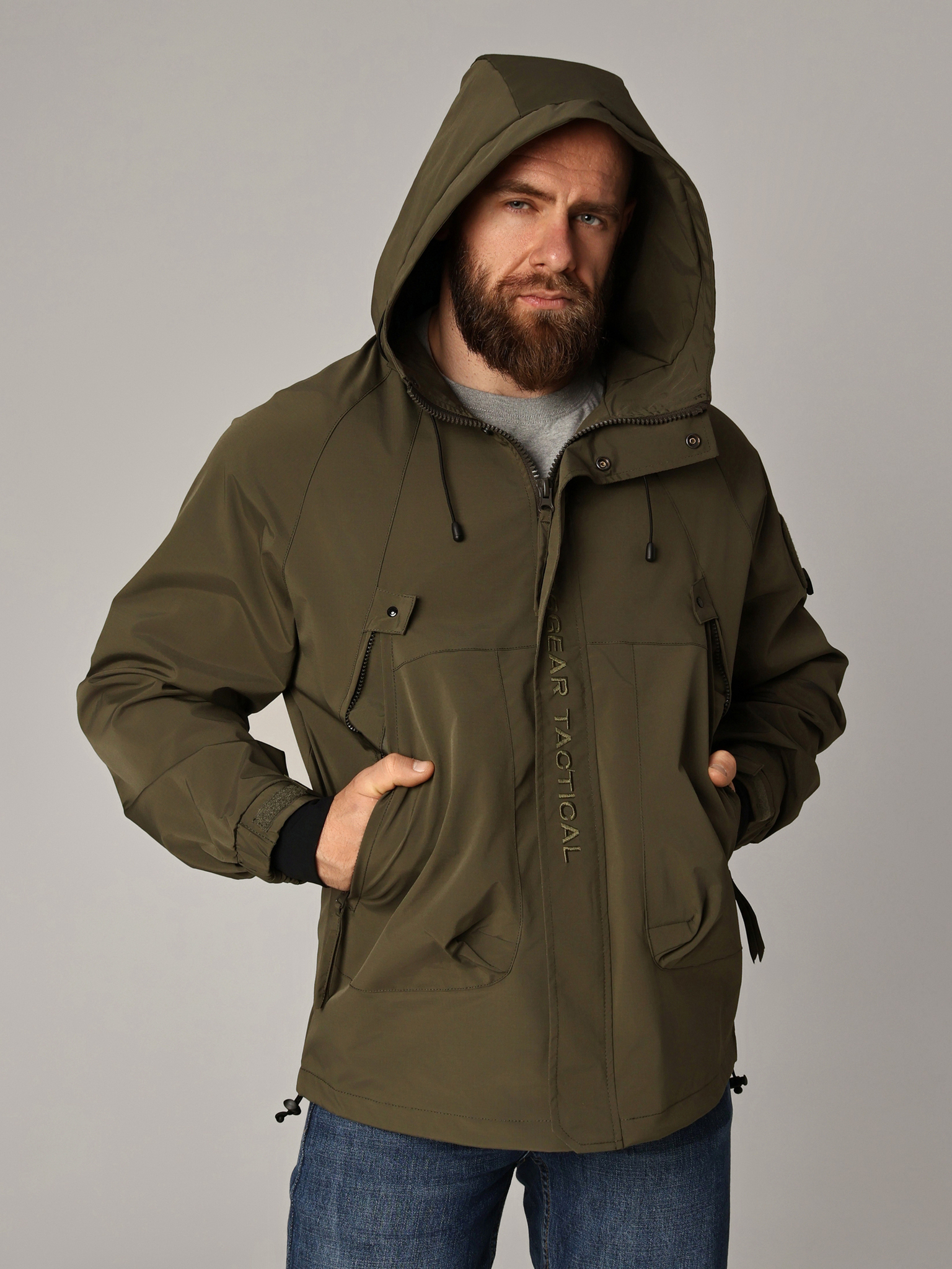 Эта мужская ветровка отличается множеством карманов, что делает ее незаменимой для хранения необходимых мелочей во время походов и туризма. Карманы надежно скрыты за прочными швами, что подчеркнет ваш милитари образ. Пластмассовая молния гарантирует легкость застегивания и надежность использования вне зависимости от времени года.