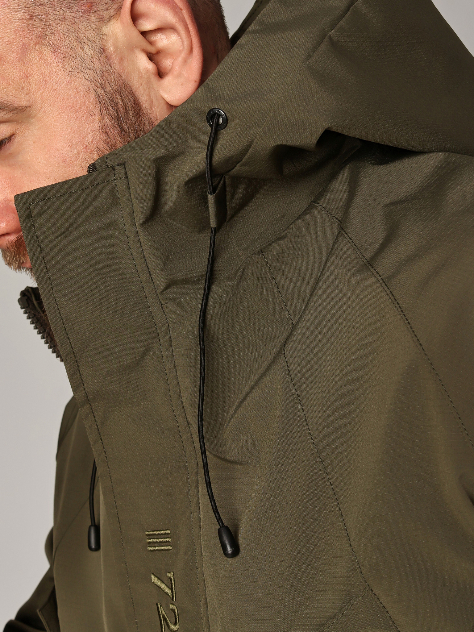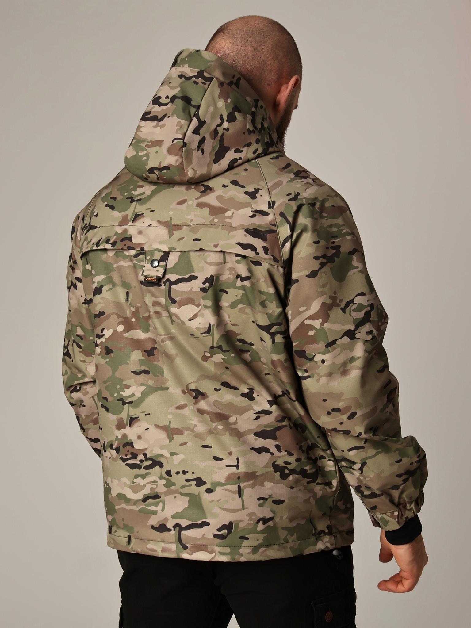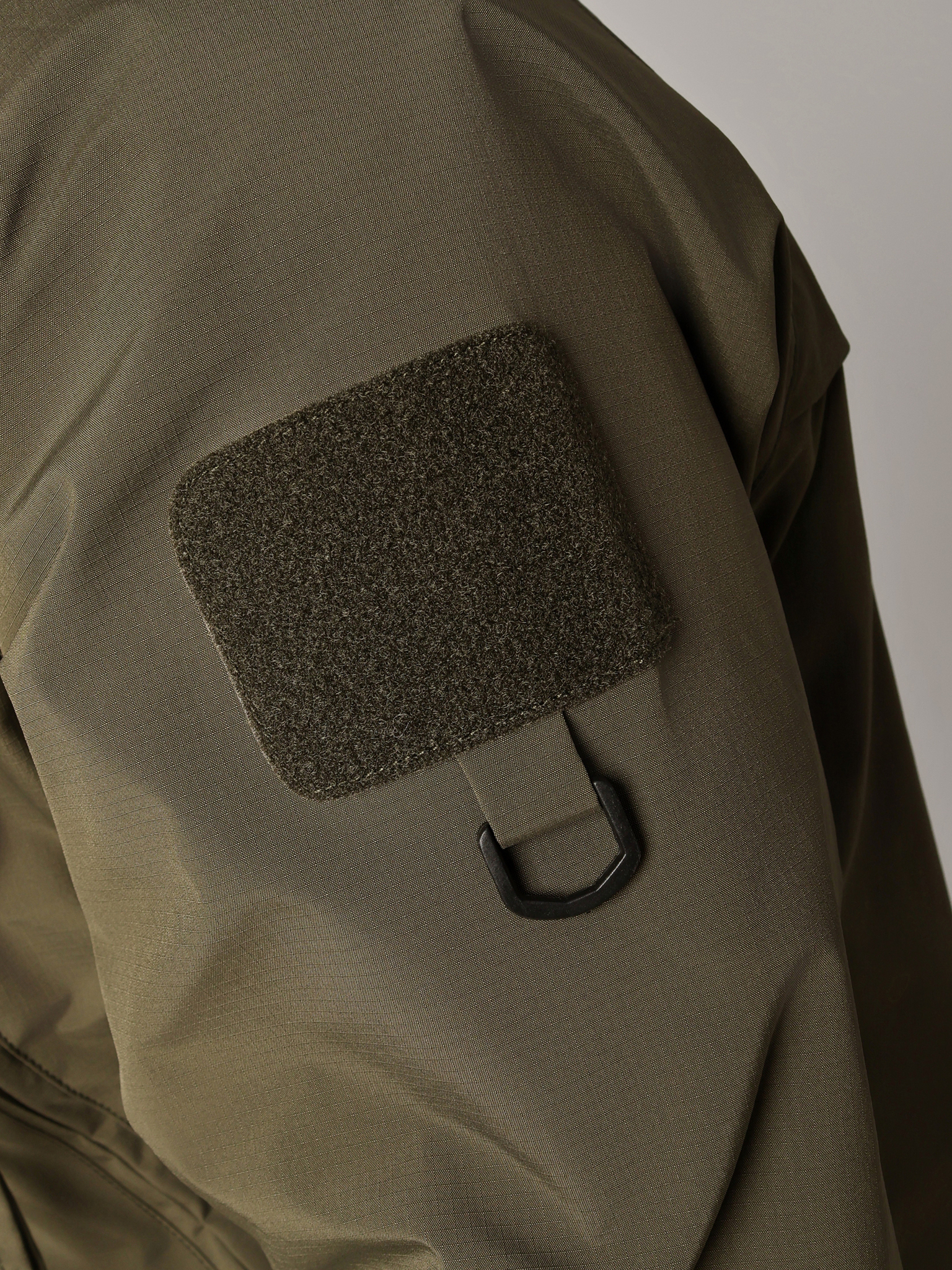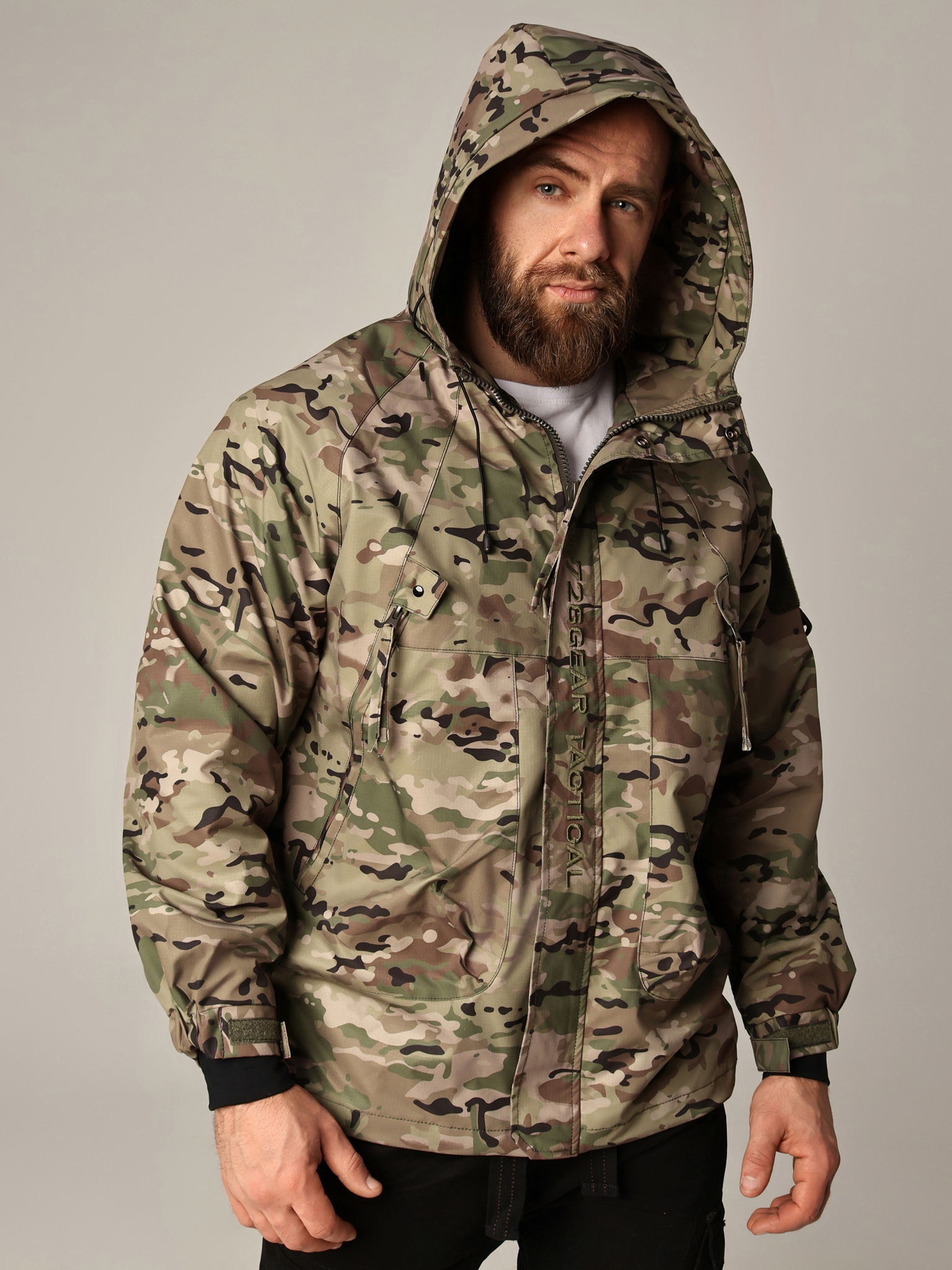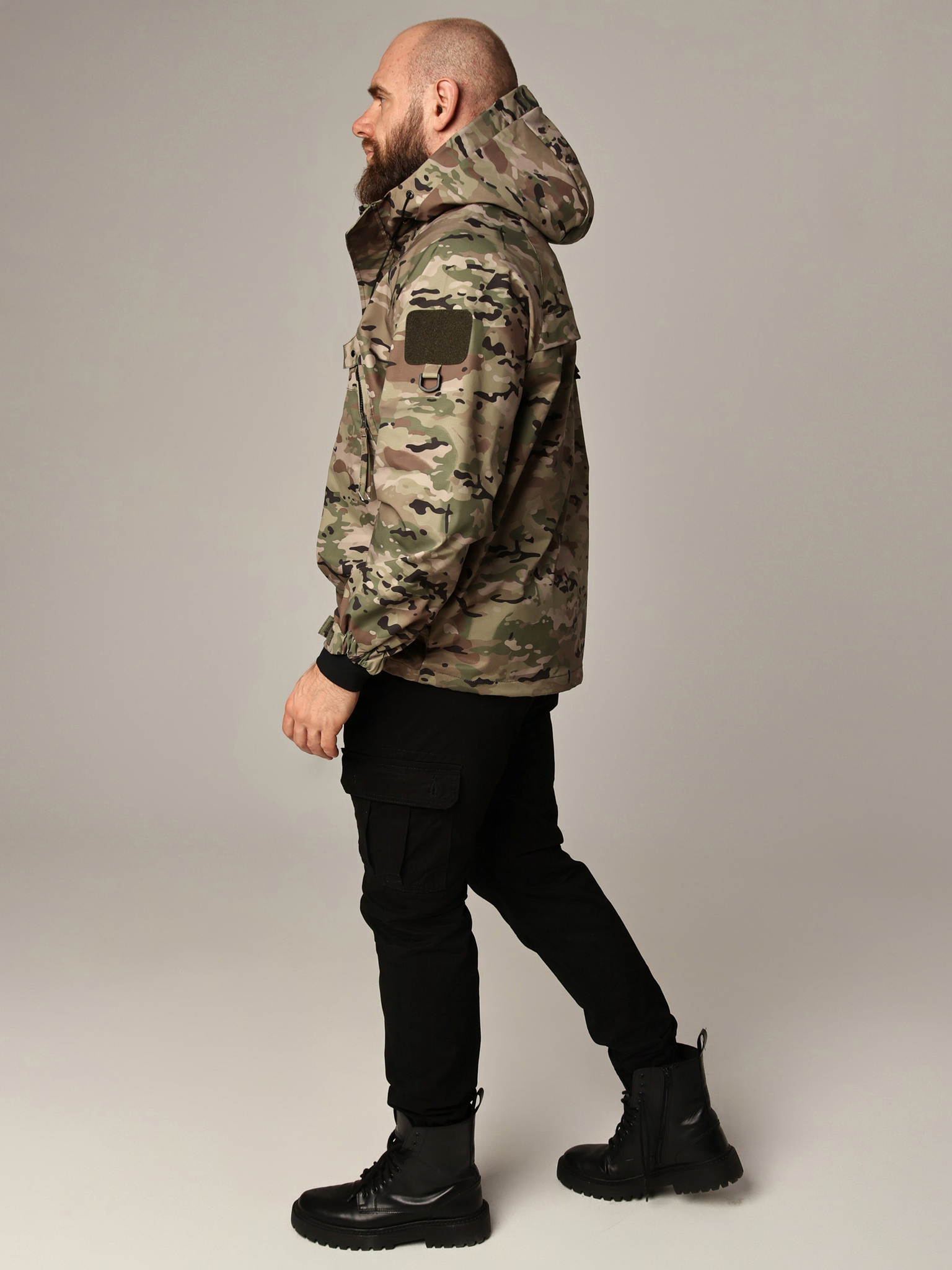 Эта мужская ветровка отличается множеством карманов, что делает ее незаменимой для хранения необходимых мелочей во время походов и туризма. Карманы надежно скрыты за прочными швами, что подчеркнет ваш милитари образ. Пластмассовая молния гарантирует легкость застегивания и надежность использования вне зависимости от времени года.