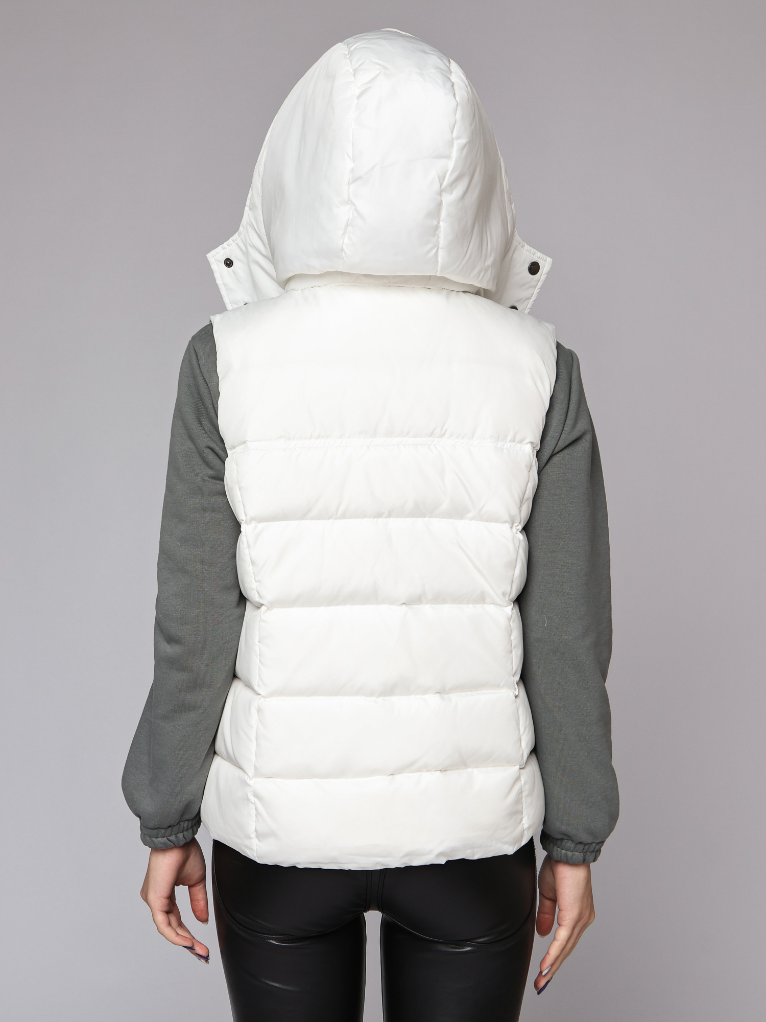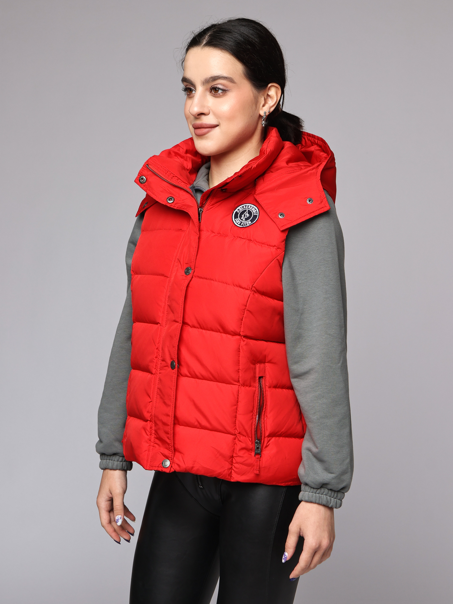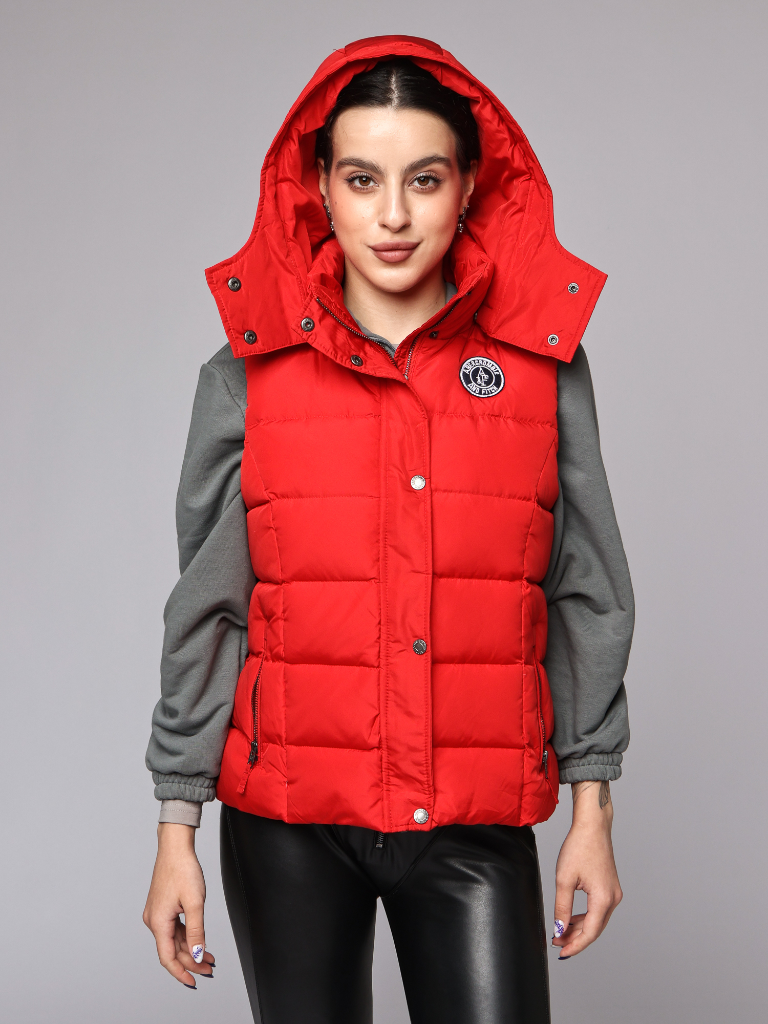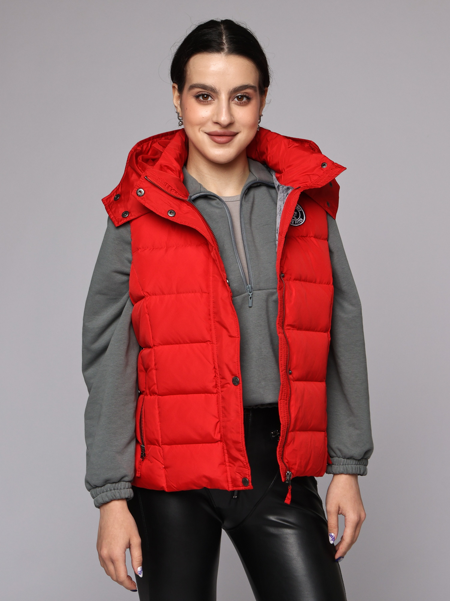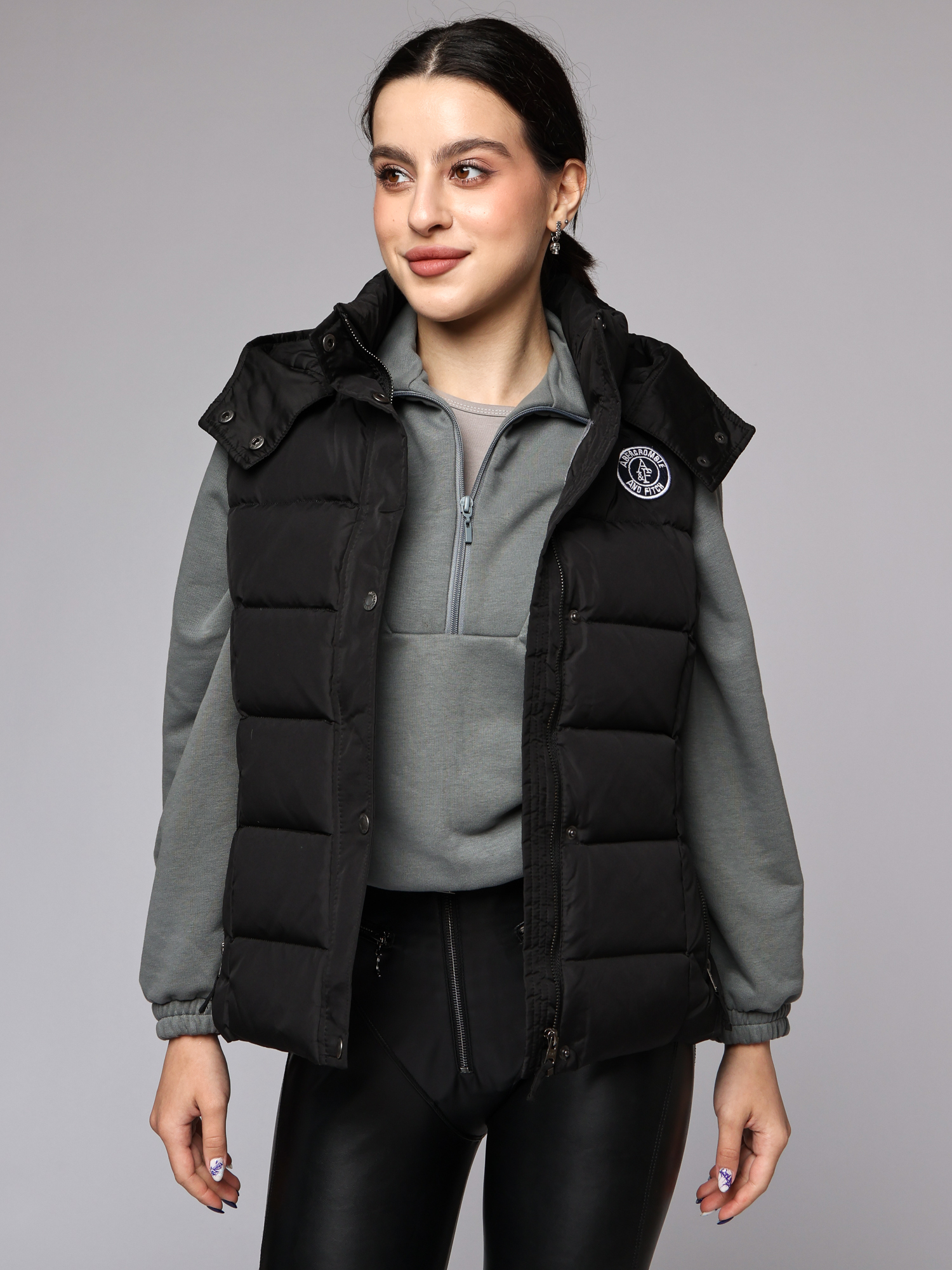 Женский утепленный жилет от бренда Abercrombie & Fitch. Внешний материал жилета - 100% нейлон, а внутренний утеплитель состоит из утиного пера и пуха. Капюшон отстегивается и имеет дополнительный воротник на кнопках, который защитит шею от ветра. Застегивается жилет на молнию и кнопки. Данная модель имеет два прорезных боковых кармана на молнии, а также один внутренний карман. На груди расположен логотип бренда. Такой базовый жилет отлично впишется в Ваш гардероб и будет защищать Вас от прохладной погоды.